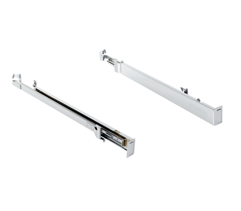 Met geleiderails kunt u bakplaten, roosters en braadpannen volledig uit de ovenruimte trekken.