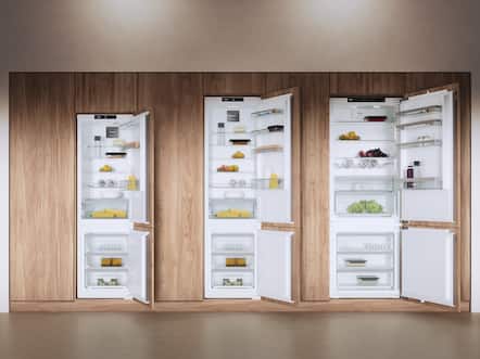 Schoon en koel: de CleanSteel-achterwand zorgt voor een uitstekende verdeling van koude in Miele koelkasten.