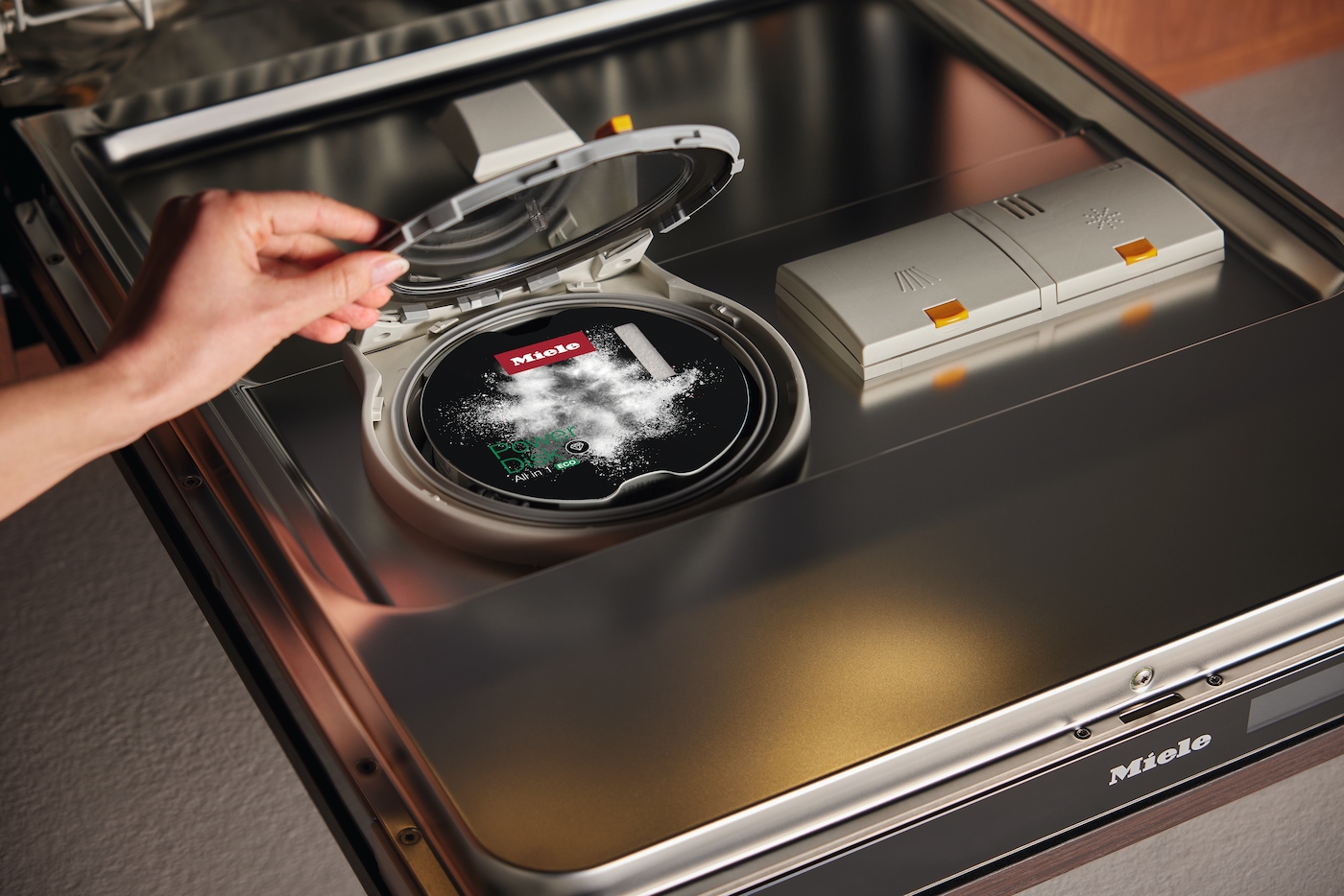 Voor het milieu: de Miele PowerDisk ECO spoelt servies zonder microplastic en twijfelachtige bestanddelen.