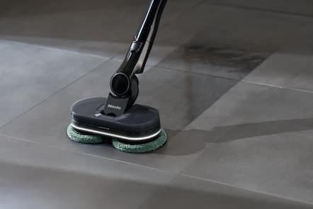 Dankzij de roterende pads en het regelbare watervolume kan zelfs opgedroogd vuil gemakkelijk worden verwijderd.