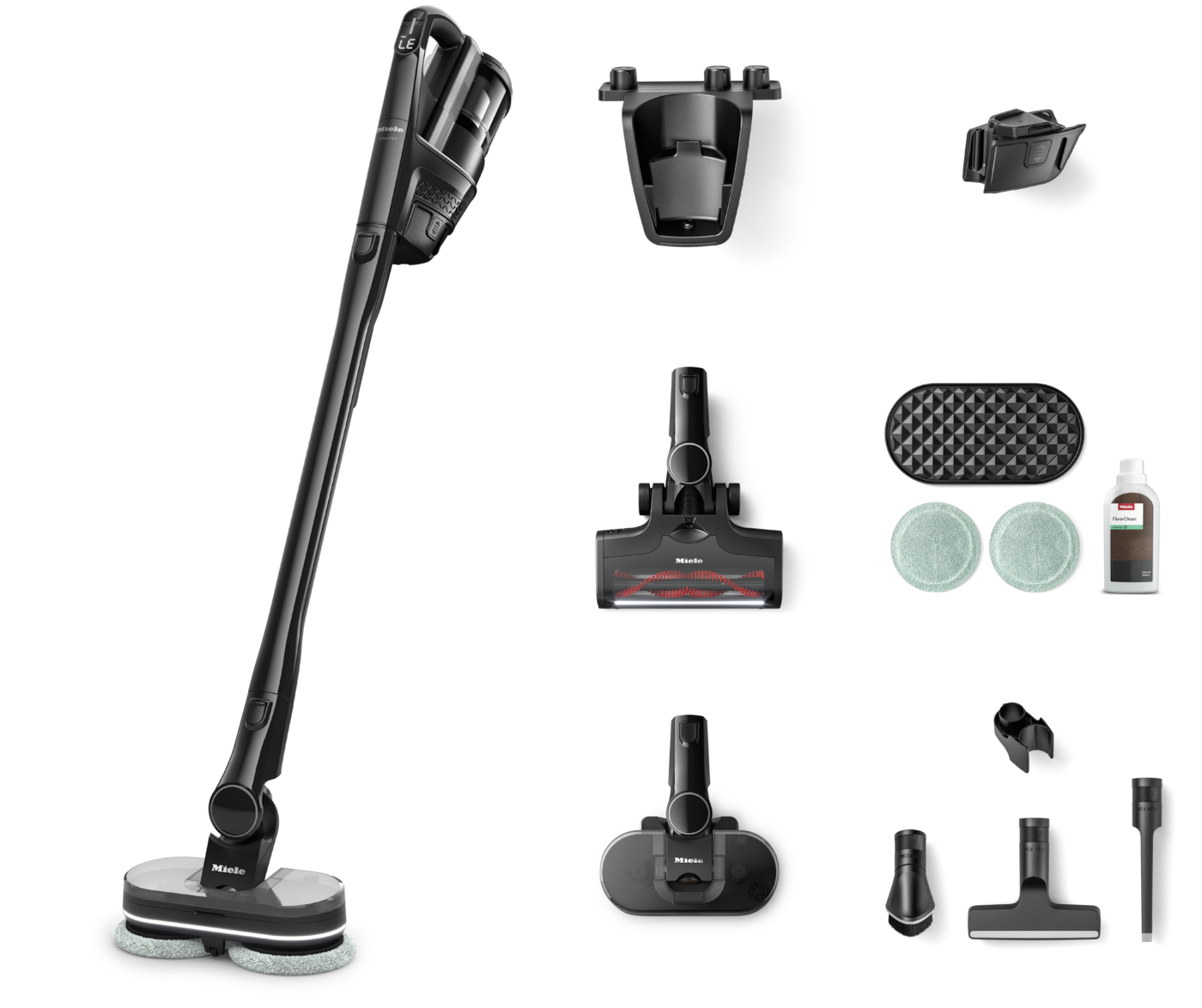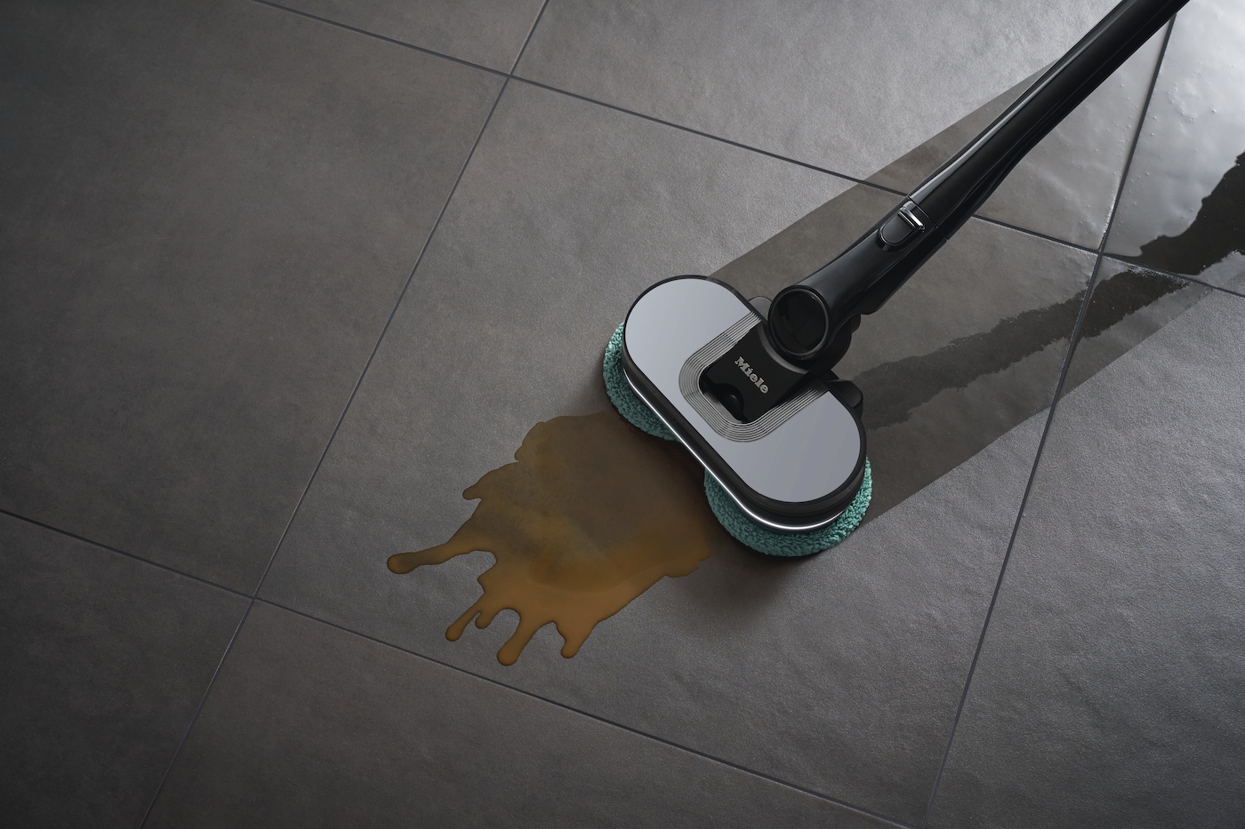 Dankzij de roterende pads en het regelbare watervolume kan zelfs opgedroogd vuil gemakkelijk worden verwijderd.