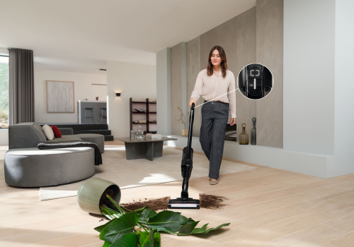 Met 99,99% stofopname zorgt de Triflex met Digital Efficiency Motor voor een grondig schoon huis.