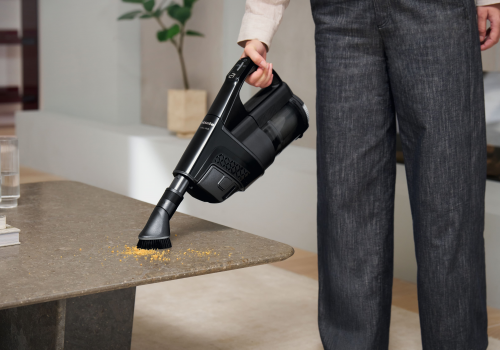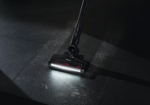 De heldere verlichting op de zuigmond spoort elk stofdeeltje op.